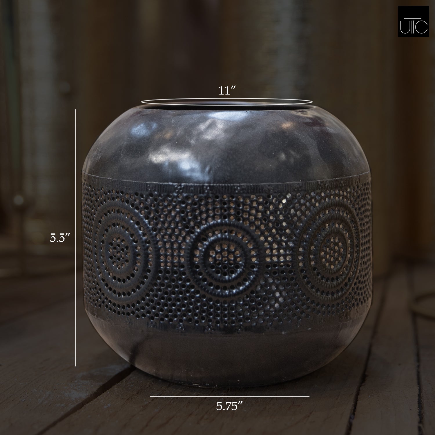 Olea Metal Round Candle Holder with Banded Pinhole Pattern