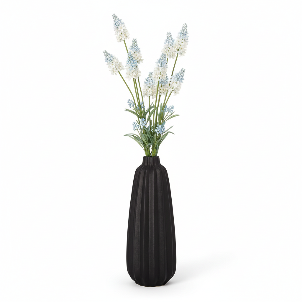 The Alen Ceramic Vase presents a bold, modern silhouette defined by its tall cylindrical form and smooth, uninterrupted lines. Finished in sleek black, it brings striking contrast and contemporary elegance to any interior. Its clean profile and refined simplicity make it a versatile décor piece for consoles, shelves, tabletops, or minimalist styling arrangements.