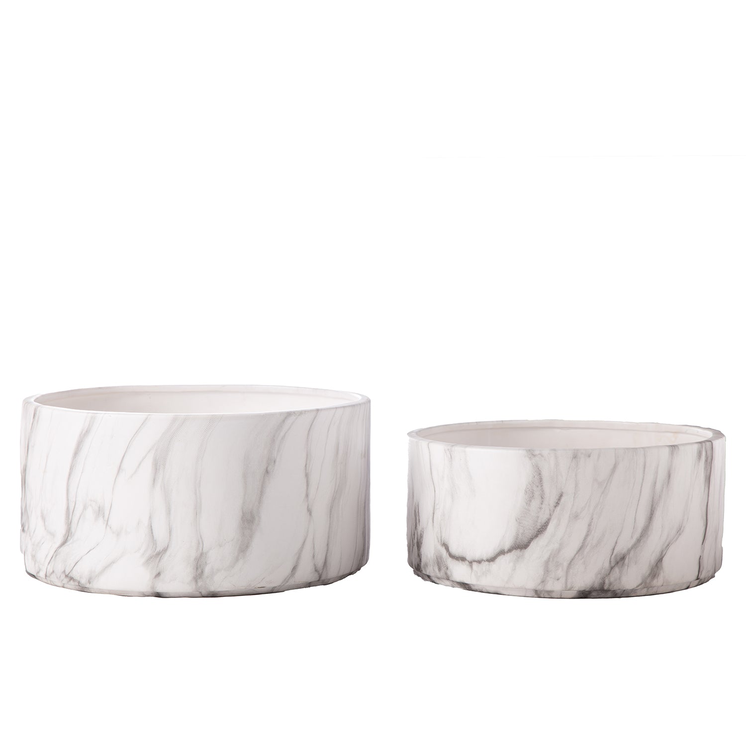 Veda Ceramic Low Round Planter Set (Set of 2)