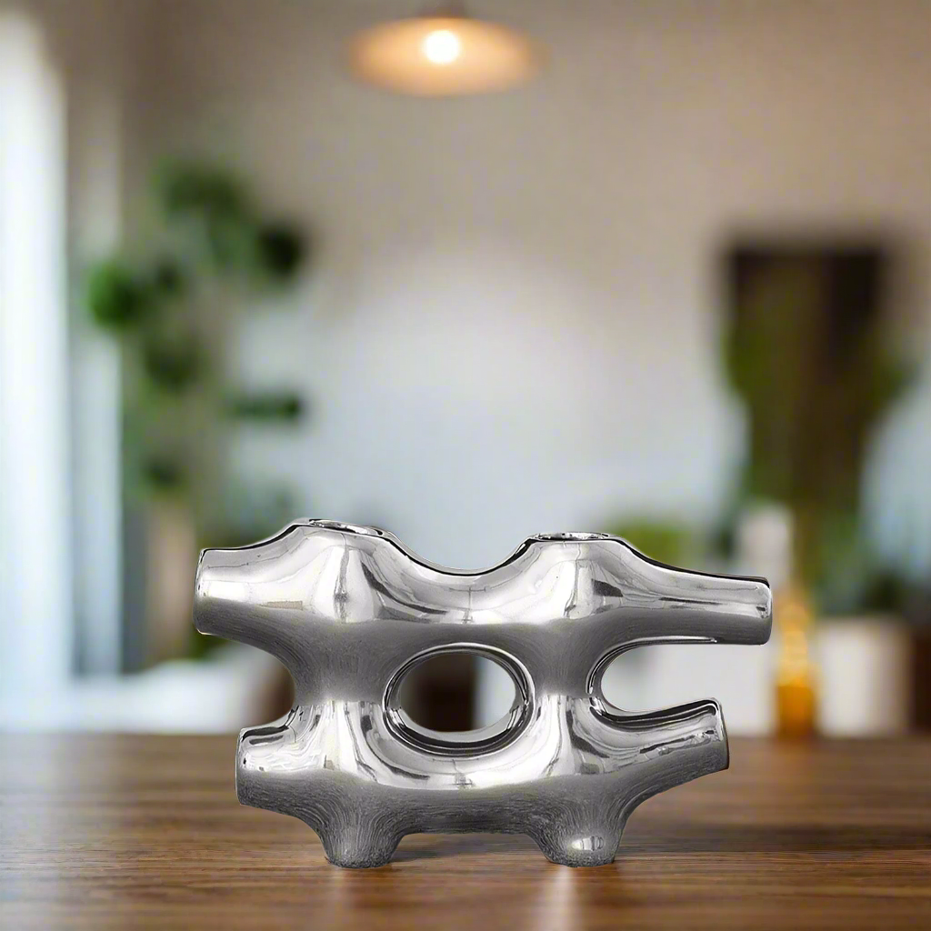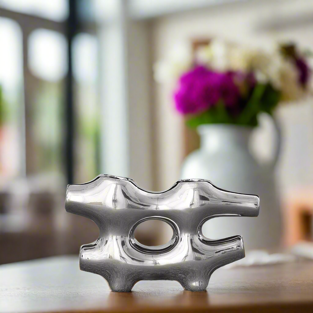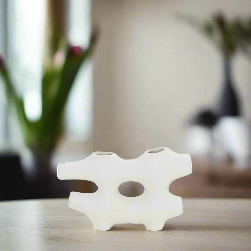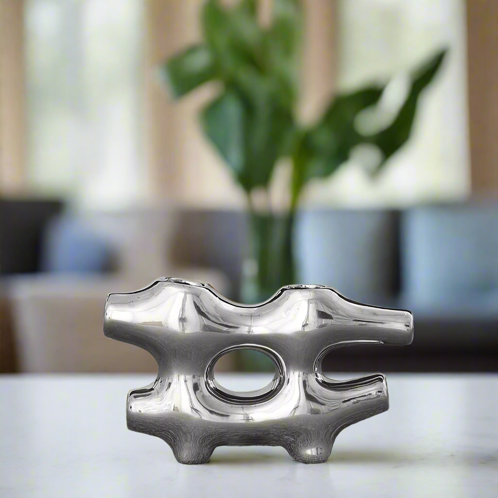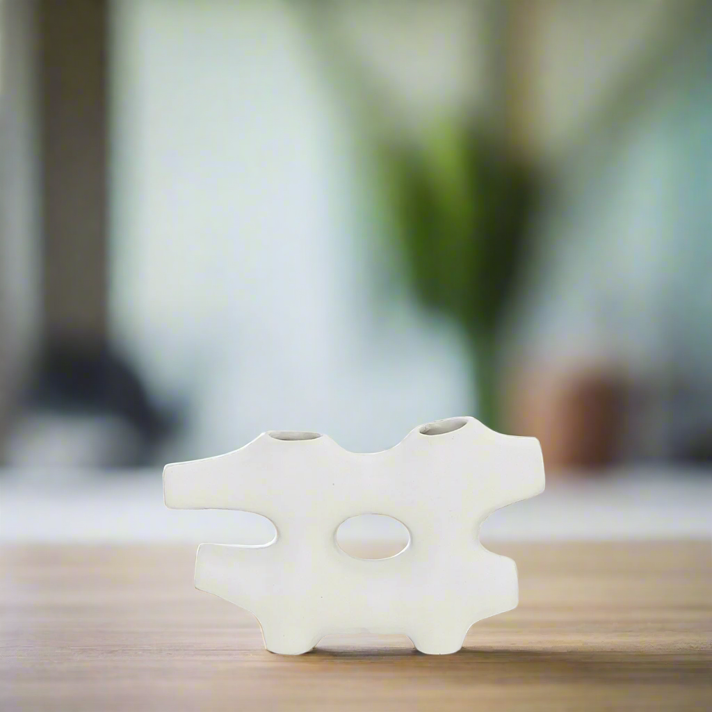 The Milan Vase stands out with its sleek and contemporary silhouette, featuring a sharp profile accented by a distinctive double narrow mouth design. Its sculptural form makes it a striking display piece, while its compact size allows it to fit effortlessly on mantels, shelves, or desktops. Perfect for showcasing a few delicate stems or as a statement accent on its own, this vase adds modern elegance to any space.