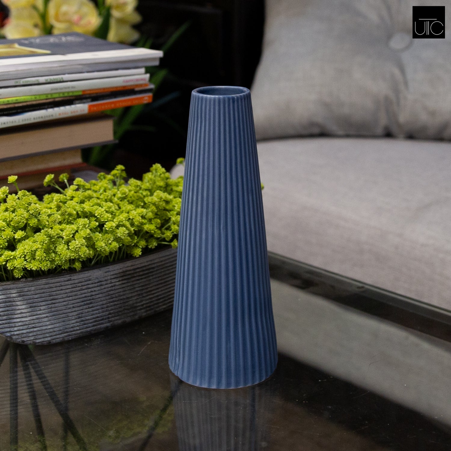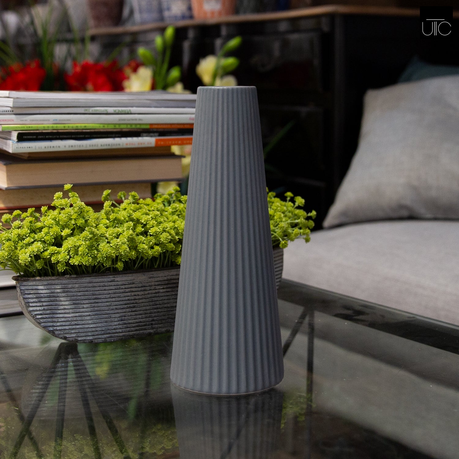 Add height, texture, and elegance to your space with the Vahlia Embossed Column Ceramic Vase. Available in two individual sizes, each vase features a round body with an embossed corrugated column pattern and a flared bottom base that adds sculptural appeal. The matte finish enhances its modern look, making it a refined accent for consoles, shelves, mantels, or centerpieces. Whether styled alone or paired together, each size brings a balanced blend of form and texture to your décor.