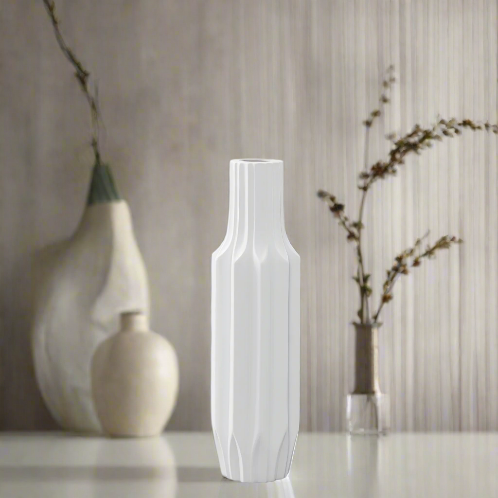 The Layla Ceramic Patterned Vase features a rounded body, short neck, and tapered bottom, beautifully complemented by an embossed wave design. Its matte finish highlights the texture, creating a timeless accent that works equally well as a standalone piece or for displaying floral arrangements.