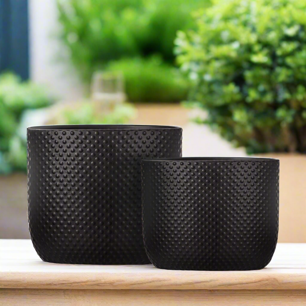 Crafted from durable ceramic, each planter highlights the dotted texture that adds subtle depth and artistry. The two complementary sizes can be styled together for a layered display or placed separately to accent different areas of your home or office.
