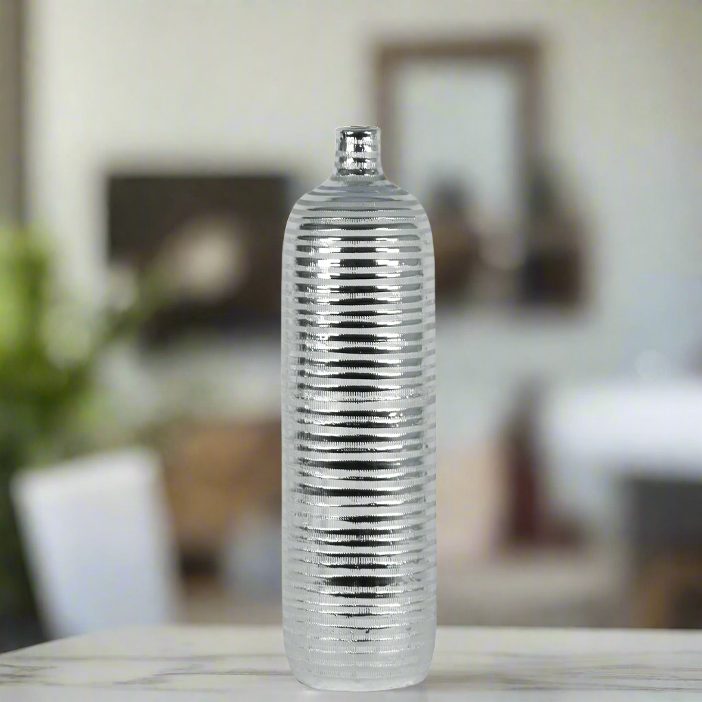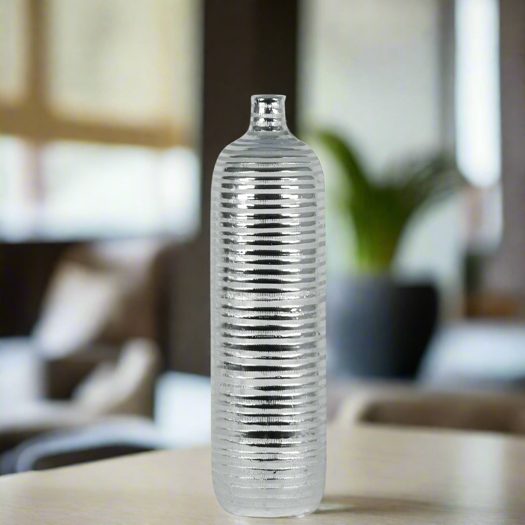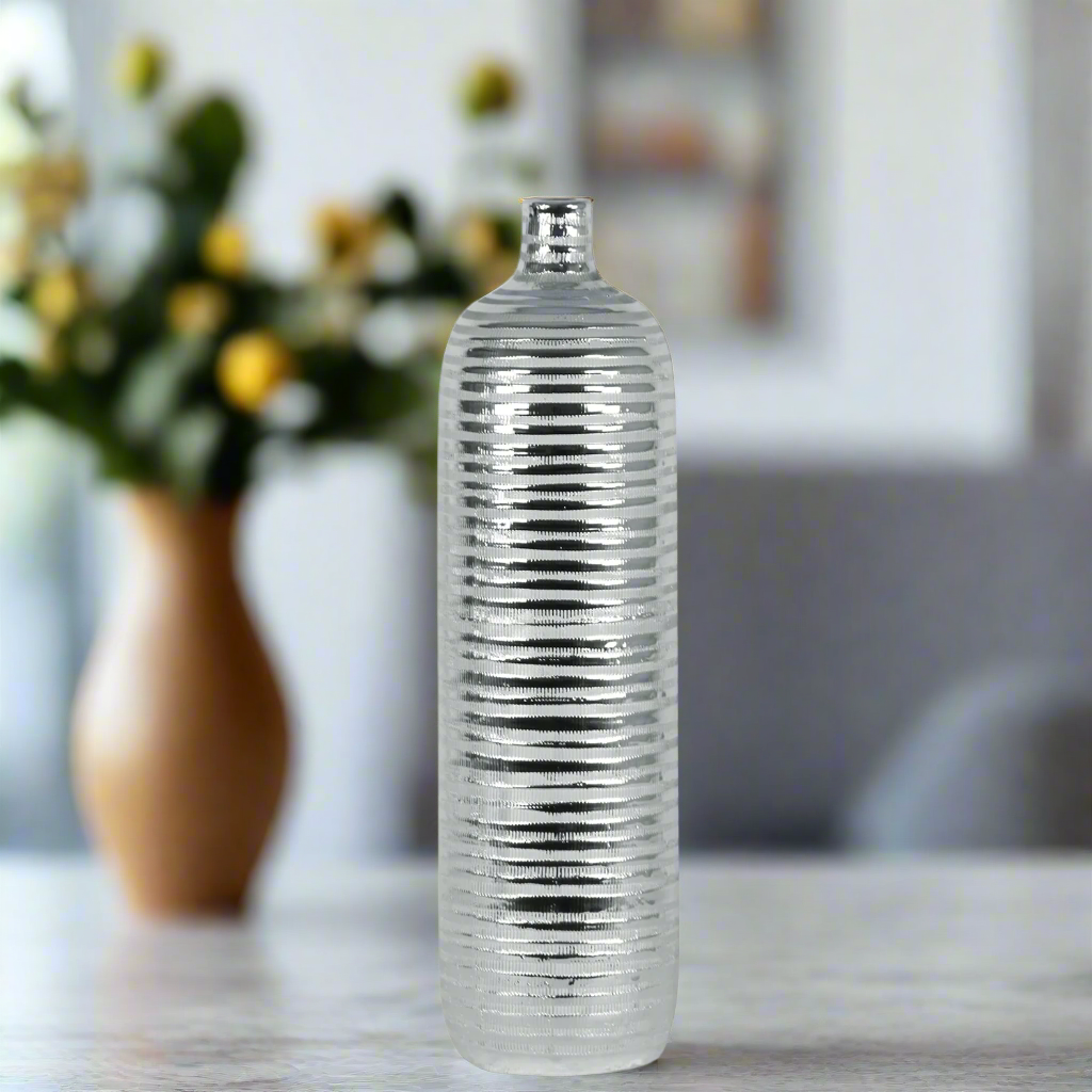 The Blossom Ceramic Vase highlights a tall, refined form with a narrow and short neck, finished with delicate rims for a graceful profile. Its combed design body introduces subtle texture and artistry, while the coated metallic finish adds a touch of modern sophistication. Perfect as a statement décor piece or styled with floral arrangements, Blossom seamlessly blends elegance and versatility.