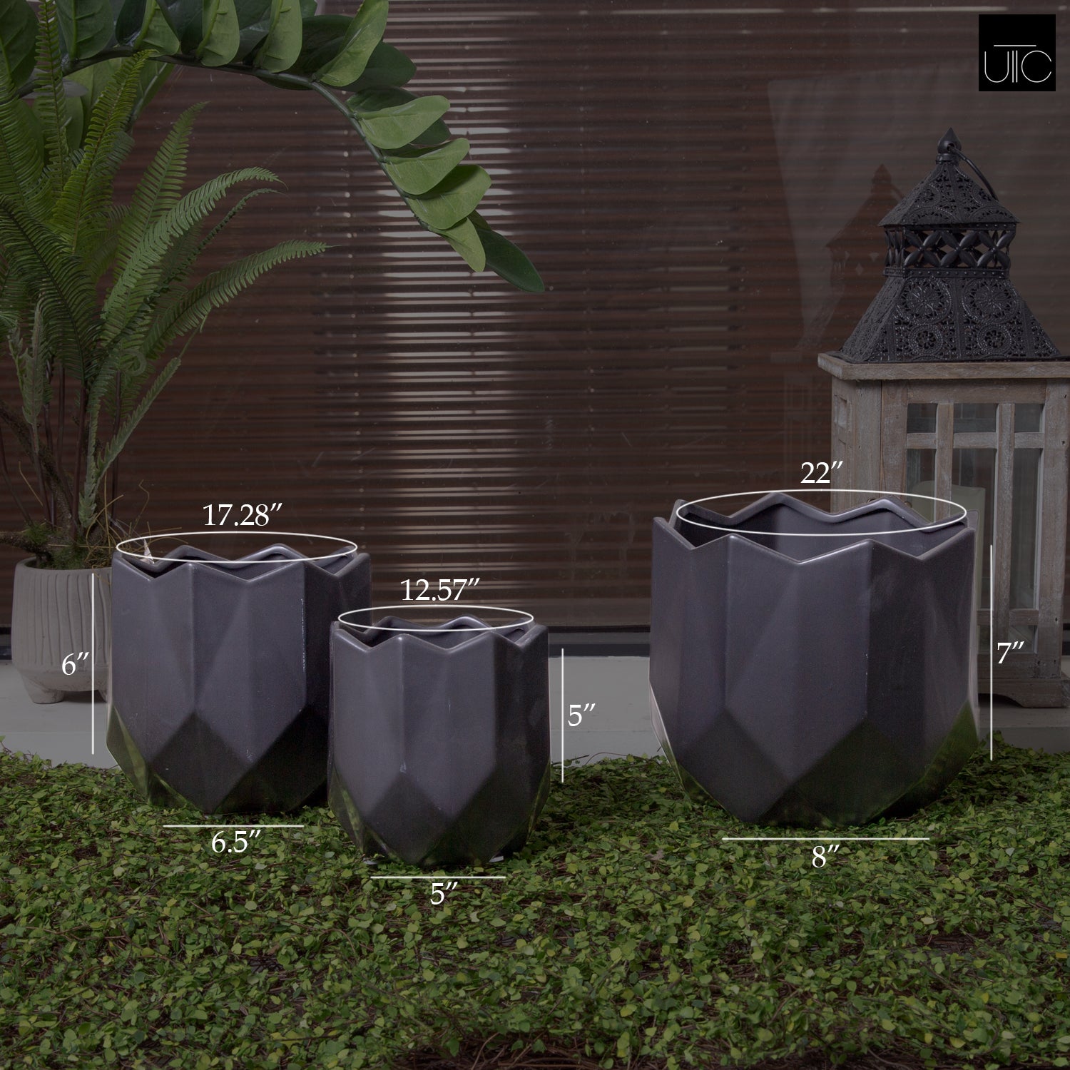 Gryphon Ceramic Geometric Round Pot (Set of 3)