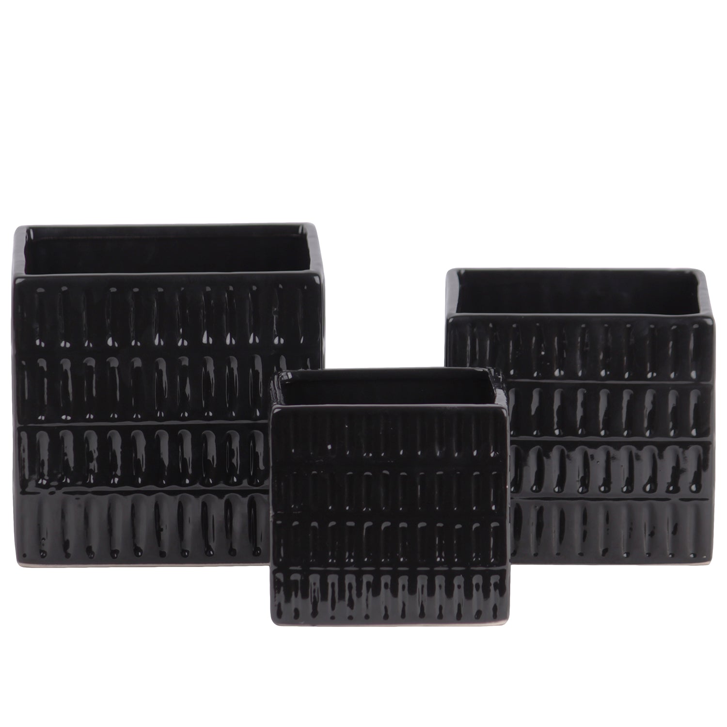 Looking for planters that combine structure with timeless detail? The Primrose Ceramic Square Planter Set showcases a four-tier embossed oblong lattice pattern along the body, paired with a tapered bottom for a refined silhouette. Finished in a sleek gloss glaze, these planters bring elegance and dimension to any setting—perfect for displaying succulents, greenery, or floral arrangements in your home, patio, or event décor.