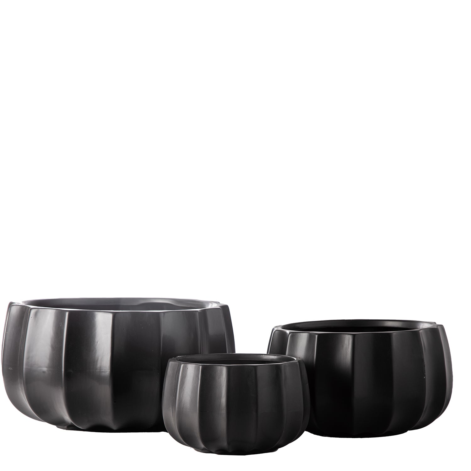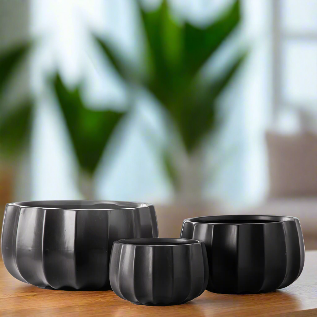 Misty Ceramic Round Bowl Set with Pressed Column Design (Set of 3)