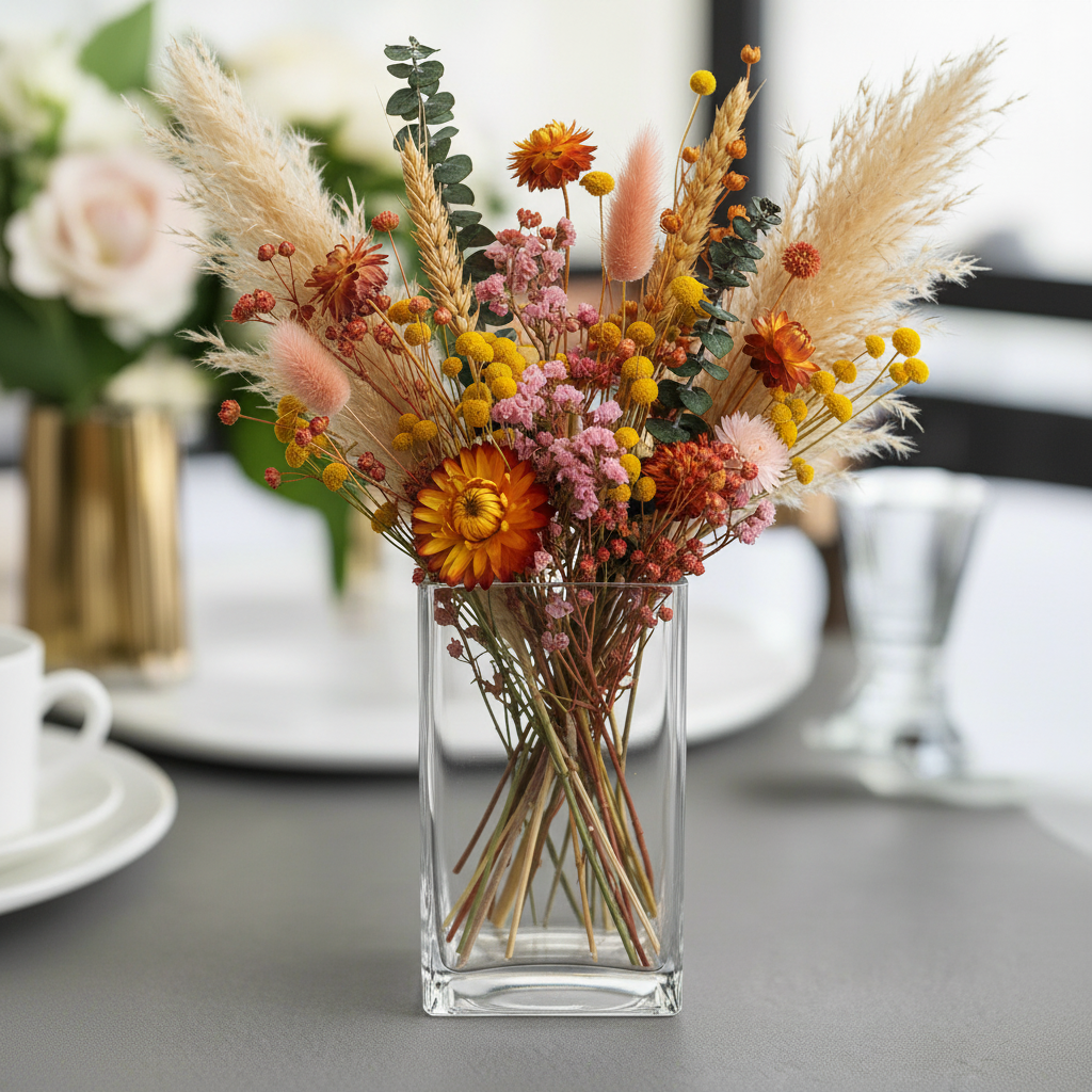 The Nexa Clear Glass Block Vase blends contemporary design with timeless functionality. Its rectangular block shape offers a structured, balanced silhouette that’s perfect for showcasing floral arrangements, candles, or layered decorative fillers. The clean edges and crystal-clear finish make it versatile for both modern and classic event settings, from weddings to everyday home styling.