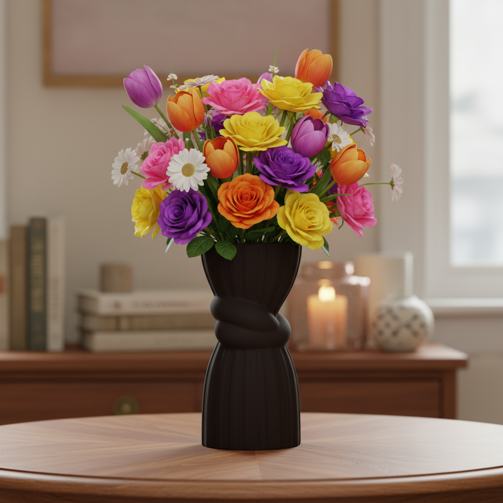 Available in classic white and bold black, Kayte offers the perfect balance of contrast and harmony, whether displayed as a pair or styled individually. Use it to showcase floral arrangements, dried botanicals, or as a sleek standalone accent to elevate any space.