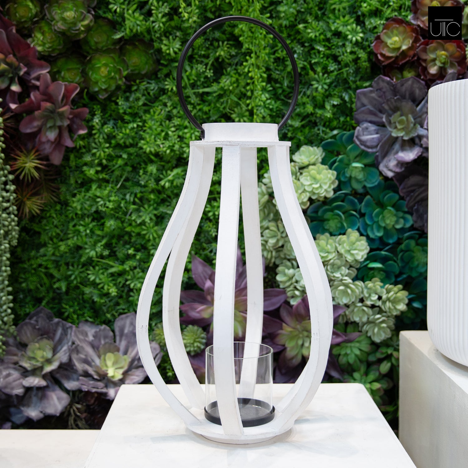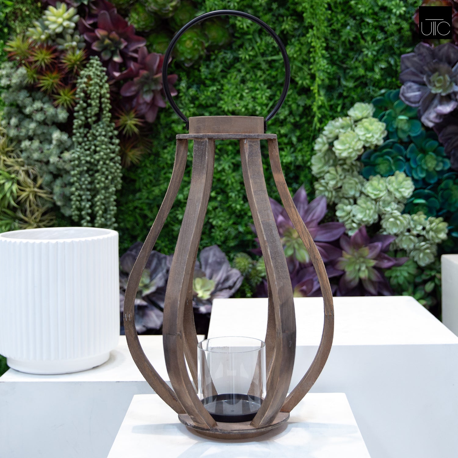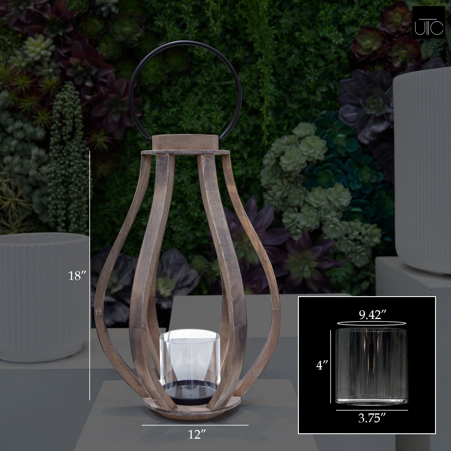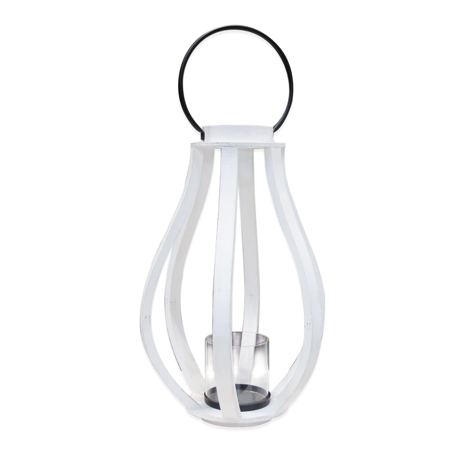 Bring warm, inviting charm to your space with the Malen Bellied Wood Lantern. Designed with a rounded, column-style body, this decorative lantern combines natural texture with a functional form. The integrated glass candle holder and metal top ring handle make it easy to display on tabletops or hang in entryways, patios, or living rooms. Available in two versatile finishes—natural brown and painted white—it complements a wide range of home styles from rustic to coastal.
