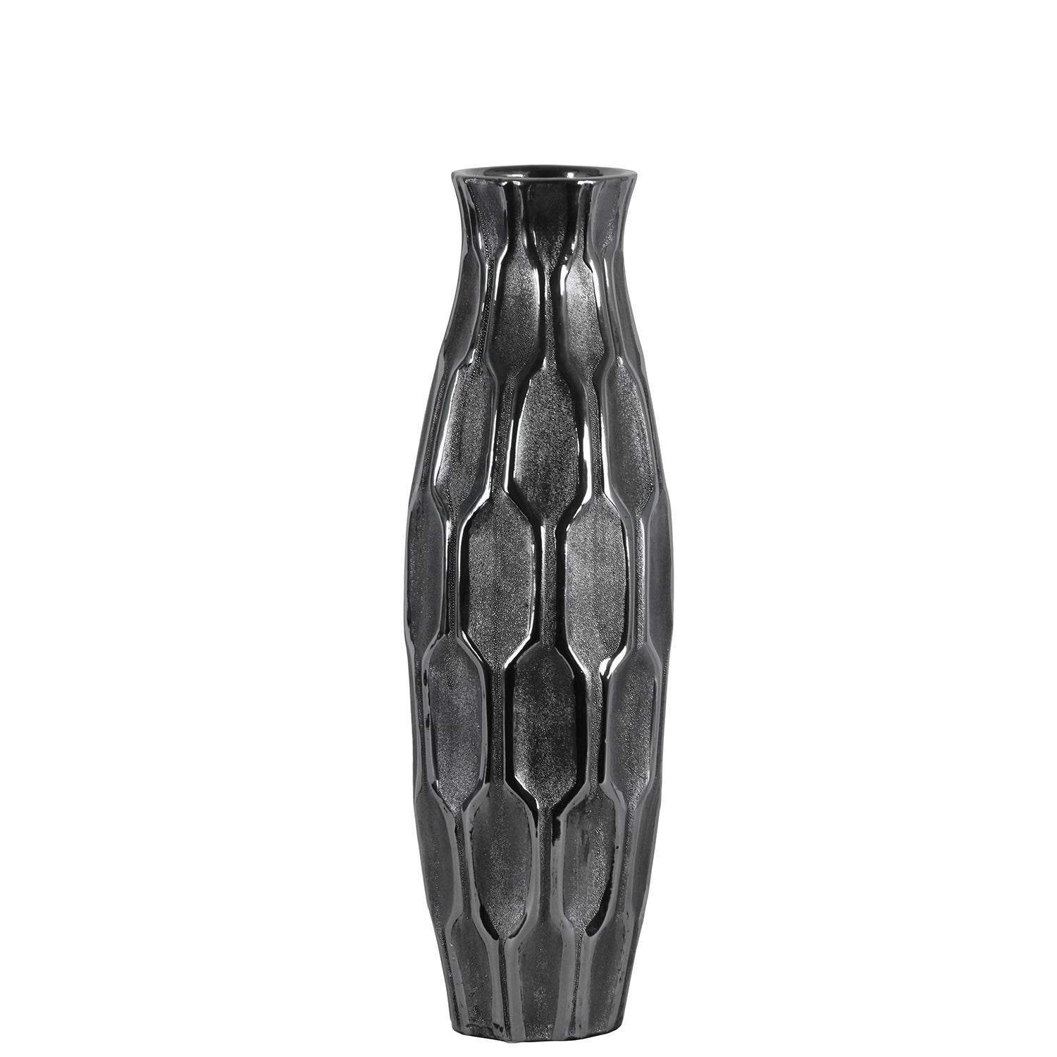 Add a touch of modern glamour to your décor with the Jayla Ceramic Bellied Vase, featuring an elegant embossed honeycomb design and a tapered bottom for a refined silhouette. Its metallic silver finish offers a sleek, contemporary shine that beautifully complements floral arrangements or stands strikingly on its own.