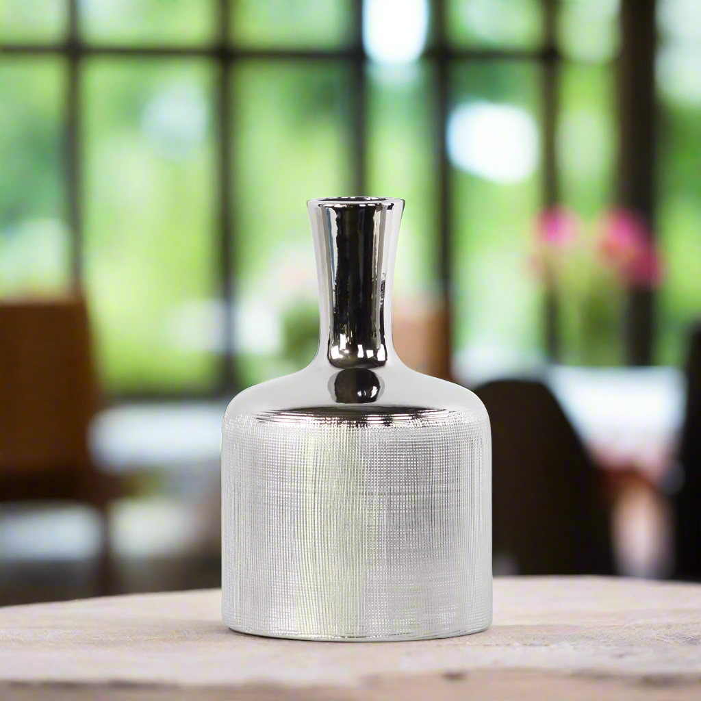 Looking to add a sleek yet artistic accent to your décor? The Indie Ceramic Vase perfectly balances modern sophistication and handcrafted charm. Its smooth, rounded bottle silhouette is complemented by an engraved crisscross pattern that catches the light beautifully—creating a play of texture and shine that elevates any space.