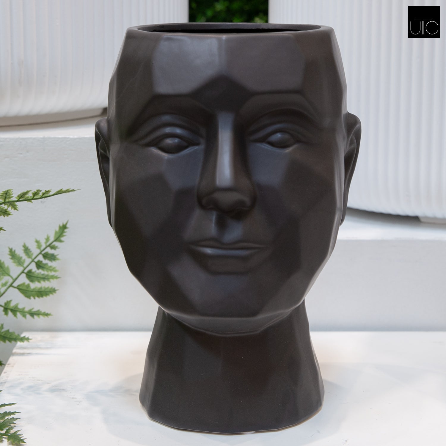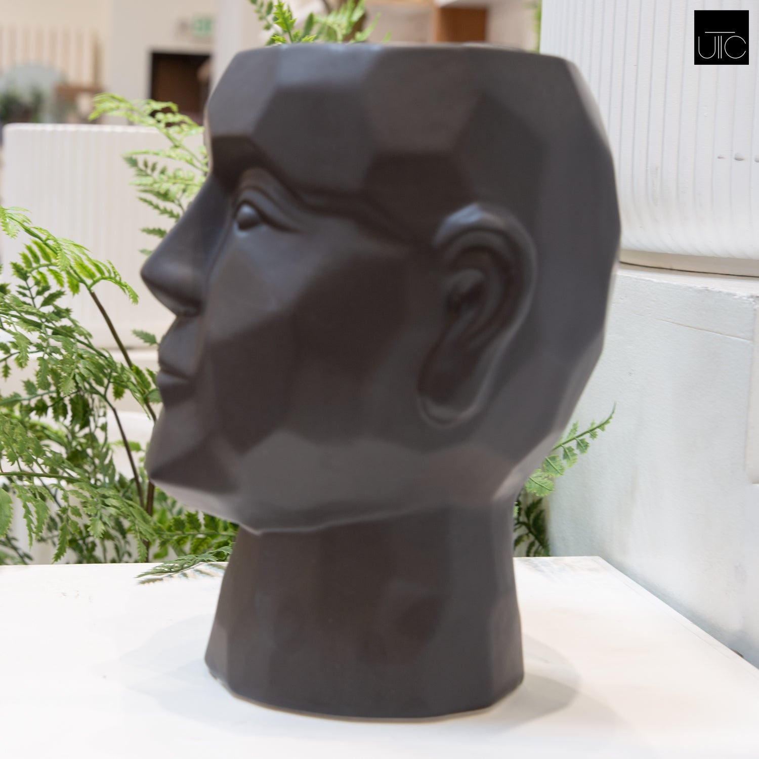 The Bailey Cubic Pattern Ceramic Head Pot offers a creative and modern twist on classic planter design. Sculpted into the shape of a man’s head with a bold cubic pattern body, this piece is both decorative and functional. Available in matte black or matte white, it makes a strong statement whether used as a planter or a standalone art piece.