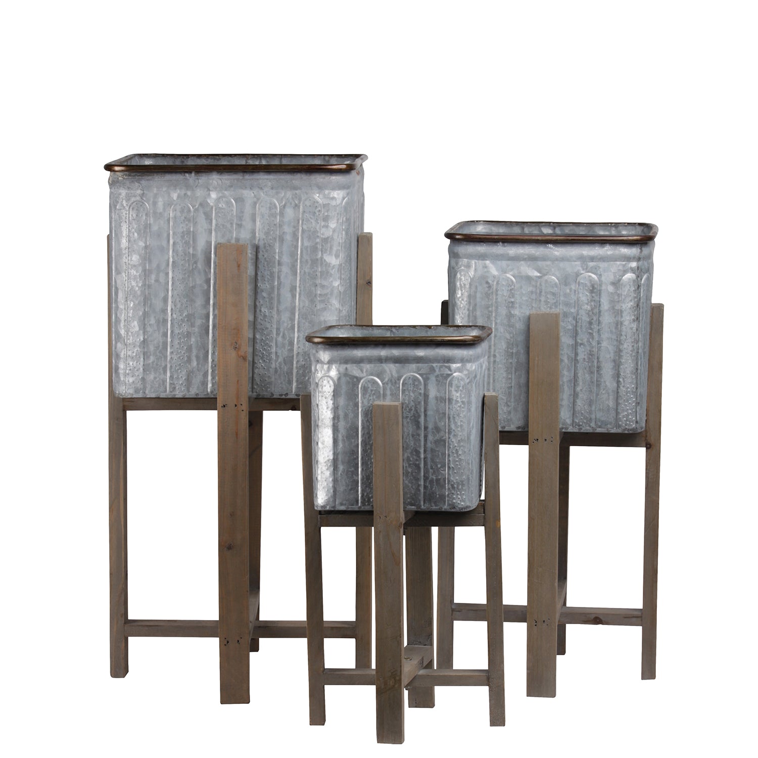 Alden Metal Square Planter Set with Wooden Stands (Set of 3)