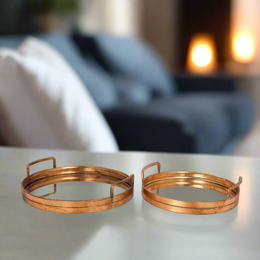 Add a touch of sophistication to your décor with the Anisa Iron Metal Tray Set, a pair of versatile trays designed for both functionality and style. With their gleaming gold finish and clean, round form, these trays make a striking accent for coffee tables, consoles, dining setups, and special occasions. Whether used for serving, organizing, or display, the Anisa Trays bring elegance and refinement to everyday living.