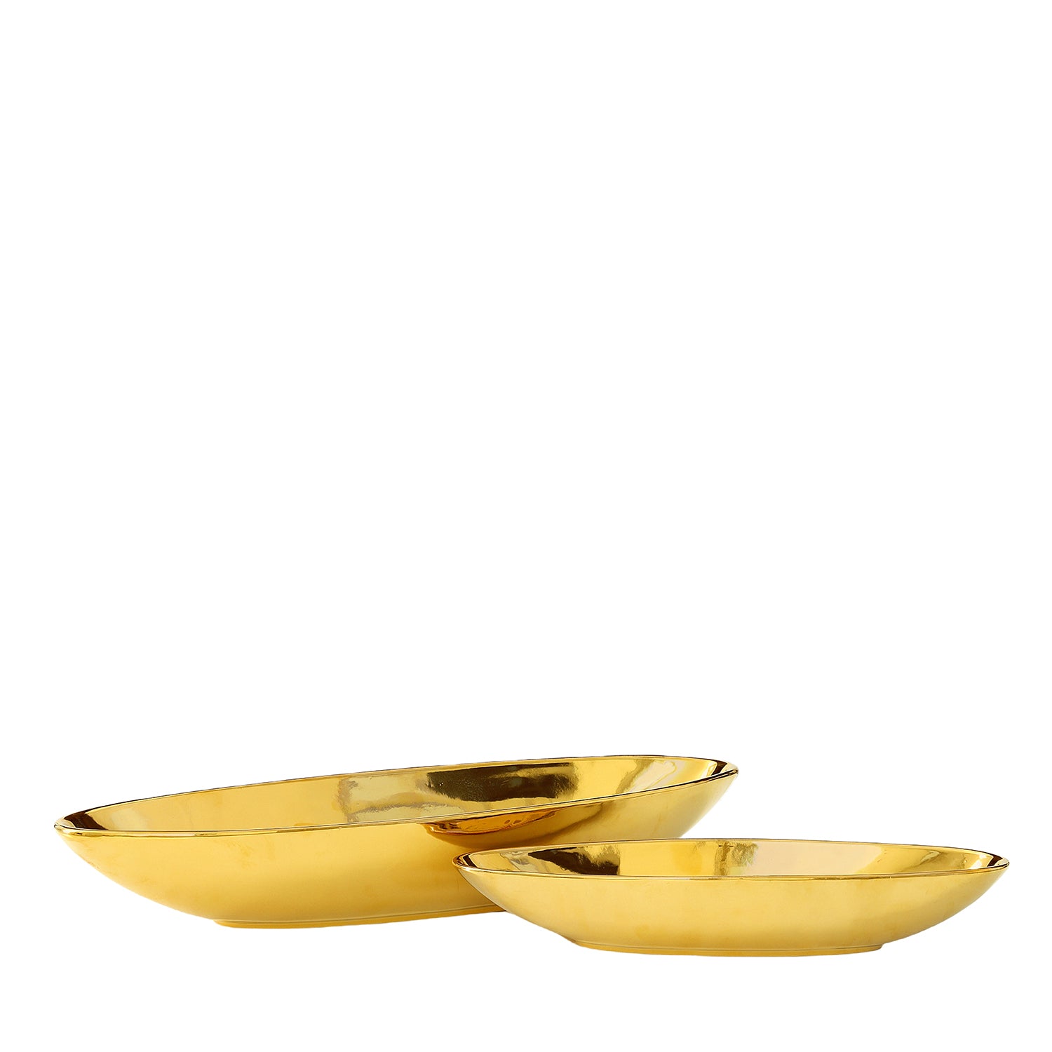 Elevate your home styling with the Ariyah Ceramic Boat Shape Decor Set, featuring two elegantly elongated vessels crafted with refined ceramic artistry. Available in two stunning variations – one with a geometric body and the other with a smooth body – each set embodies modern elegance with an electroplated gold finish that adds a touch of luxury and sophistication.