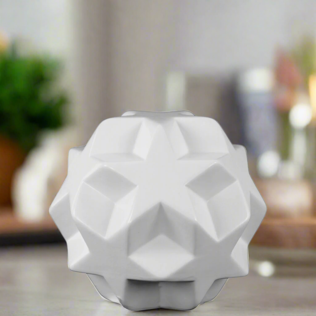 The Camryn Ceramic Star Ball Figurine brings a touch of celestial charm to your décor. Designed with a star-inspired form and finished with a smooth glossy surface, this figurine combines simplicity with modern elegance. Its compact size makes it perfect as a decorative accent for shelves, desks, or coffee tables, while its reflective surface enhances surrounding light for a subtle yet striking presence.
