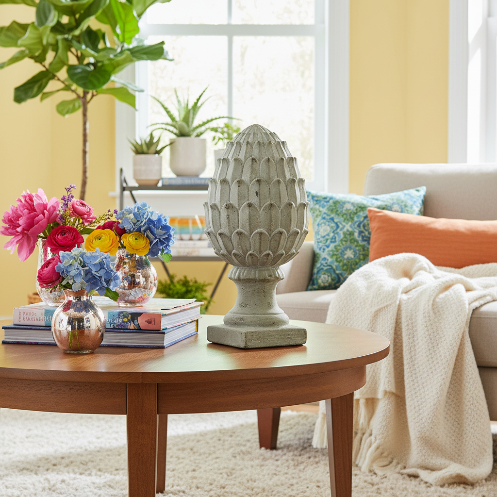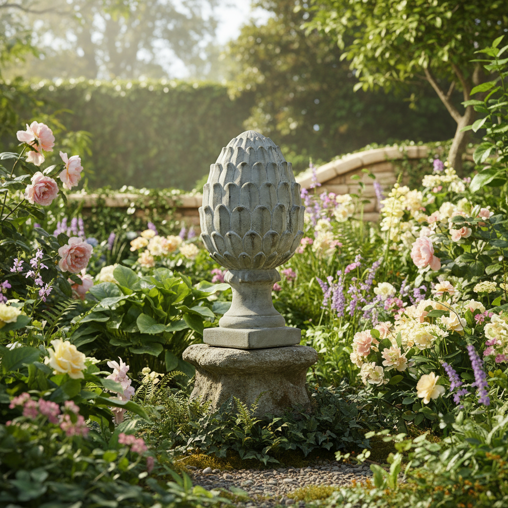 - Intricately crafted figurine inspired by classic artichoke and pinecone motifs