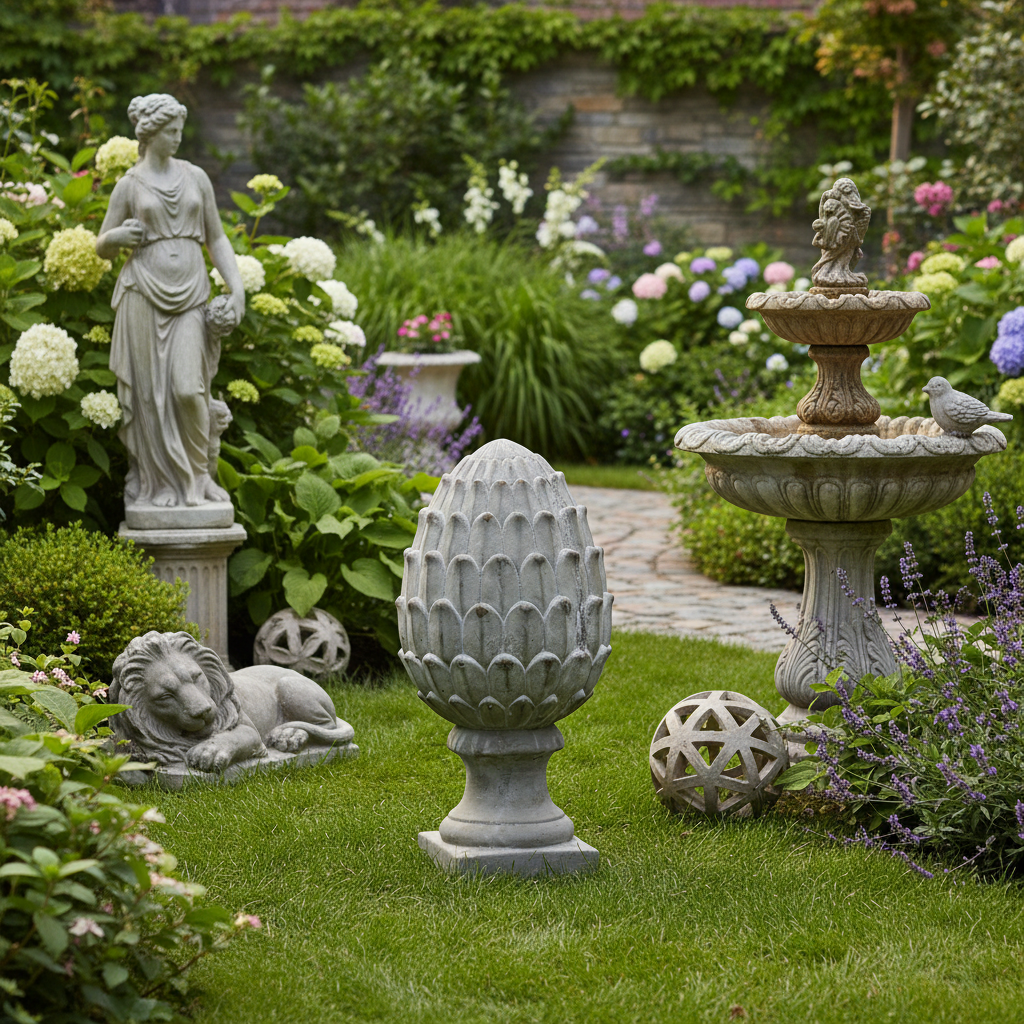 Looking for a timeless accent that captures the beauty of classical design? The Kailea Cement Artichoke Figurine combines natural inspiration with architectural elegance, making it a stunning decorative statement for any home or garden. Resting atop a sturdy pedestal base, this sculptural piece features a beautifully detailed, overlapping scaled pattern that resembles the layered bracts of an artichoke or pinecone—symbols of enlightenment, renewal, and prosperity across many cultures.