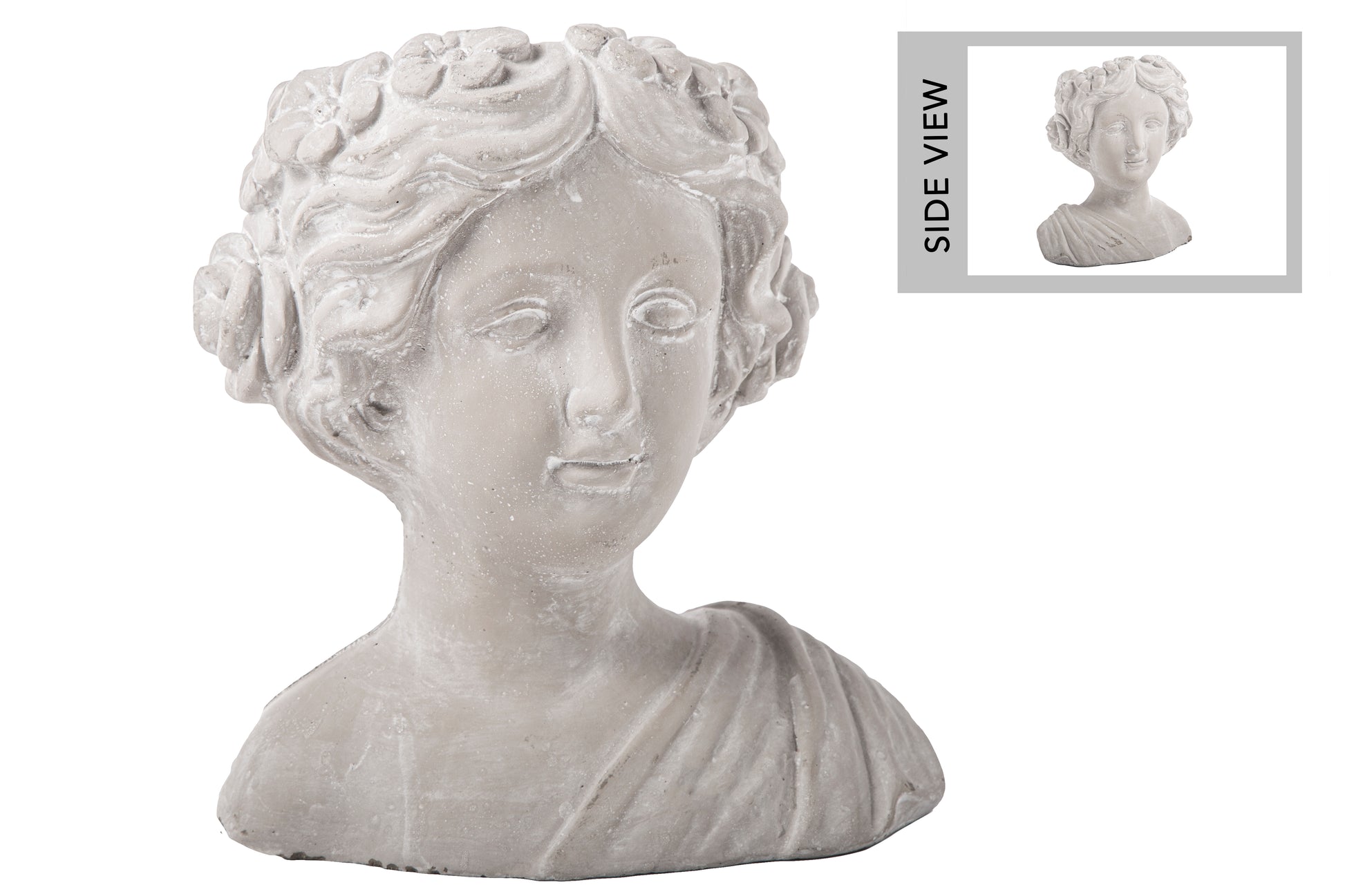 Cement Roman Young Lady Head Pot Washed Concrete Finish Gray-9.50"H
