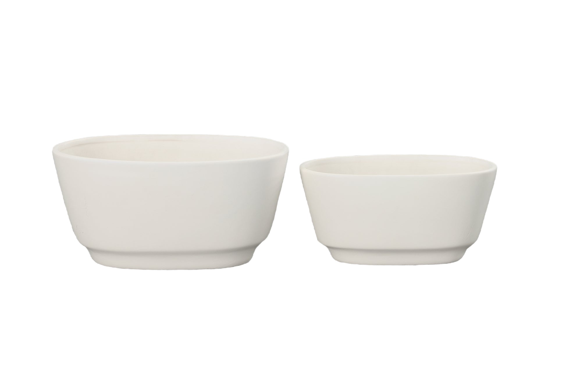 Ceramic Oval Pot with Tapered Bottom Design Set of Two Matte Finish White