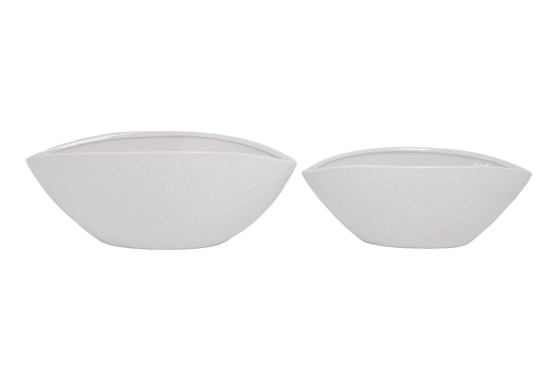 Ceramic Oval Shape Set of Two Shiny White Finish