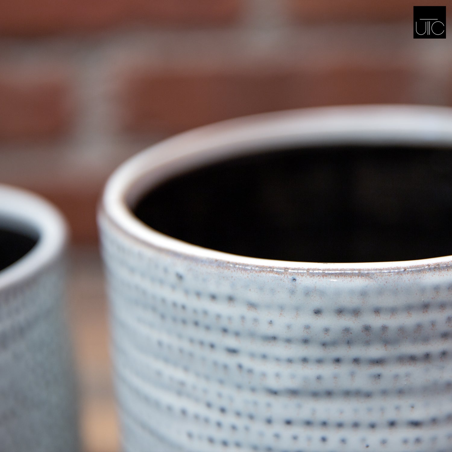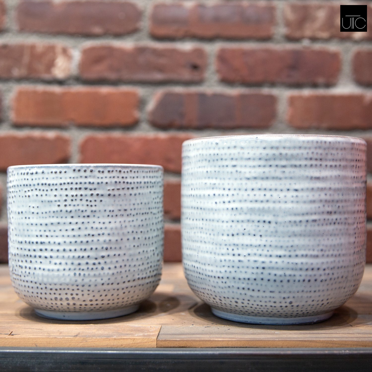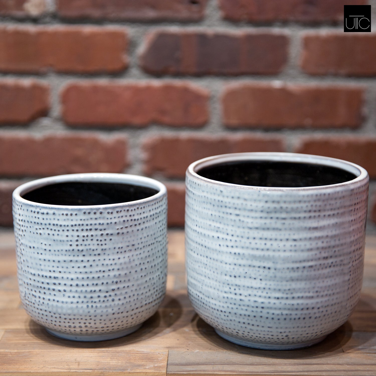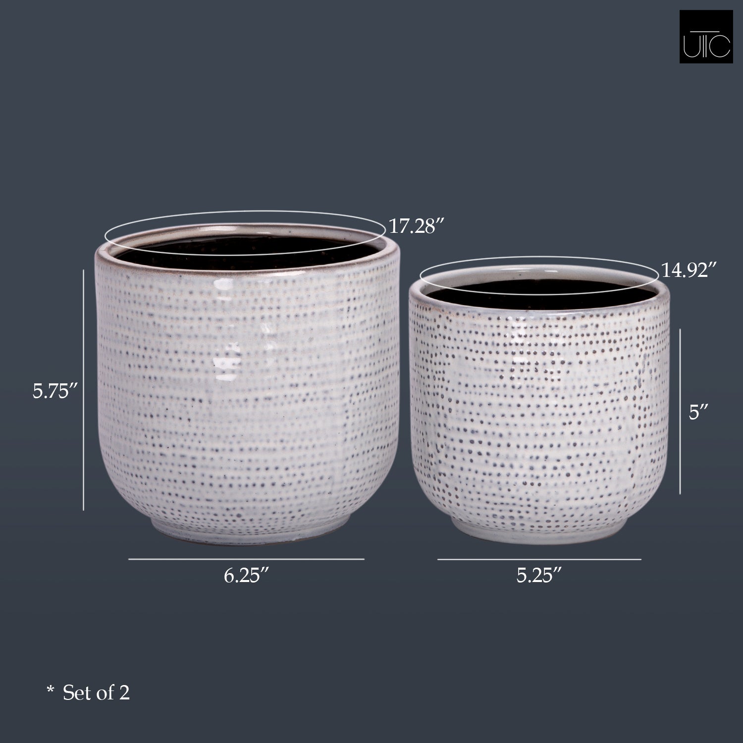 Ceramic Round Pot with Black Inner Surface and Dotted Glazed Pattern Design Body Set of Two Gloss Finish Ivory