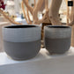 Ceramic Round Pot with Black Inner Surface, Dotted Glazed Pattern Design Body and Matte Gray Banded Bottom Set of Two Gloss Finish Ivory