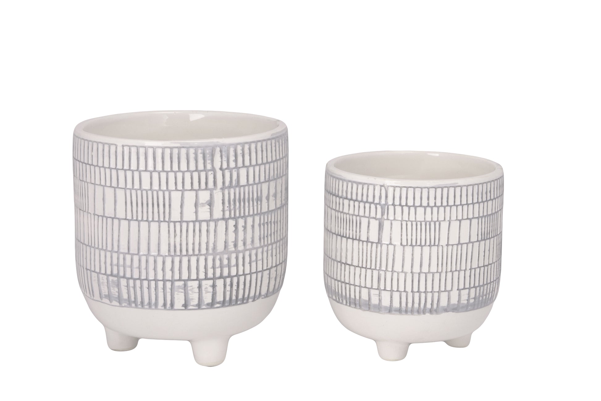 Ceramic Round Pot with Embossed Seamless Checkered Pattern Design Body on Tripod Stand Set of Two Gloss Finish Baby Blue