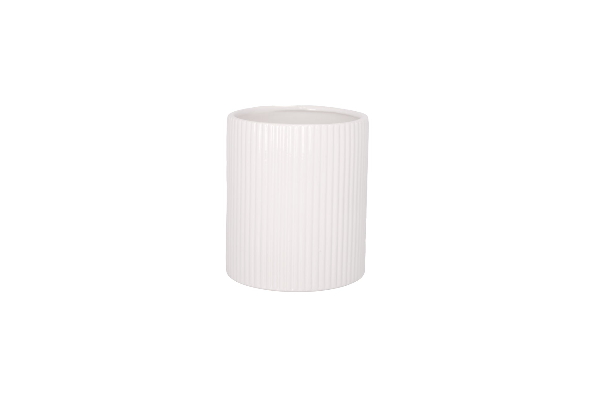 Ceramic Round Utensil Jar Gloss Finish White..6.00"x6.00"x7.00"H