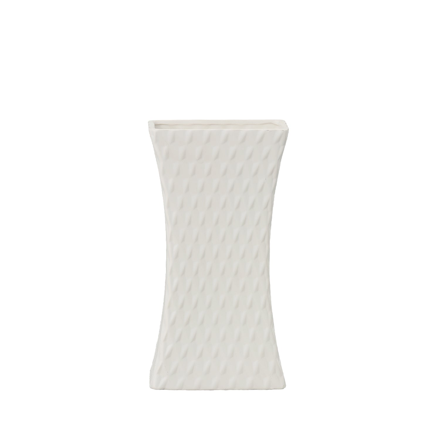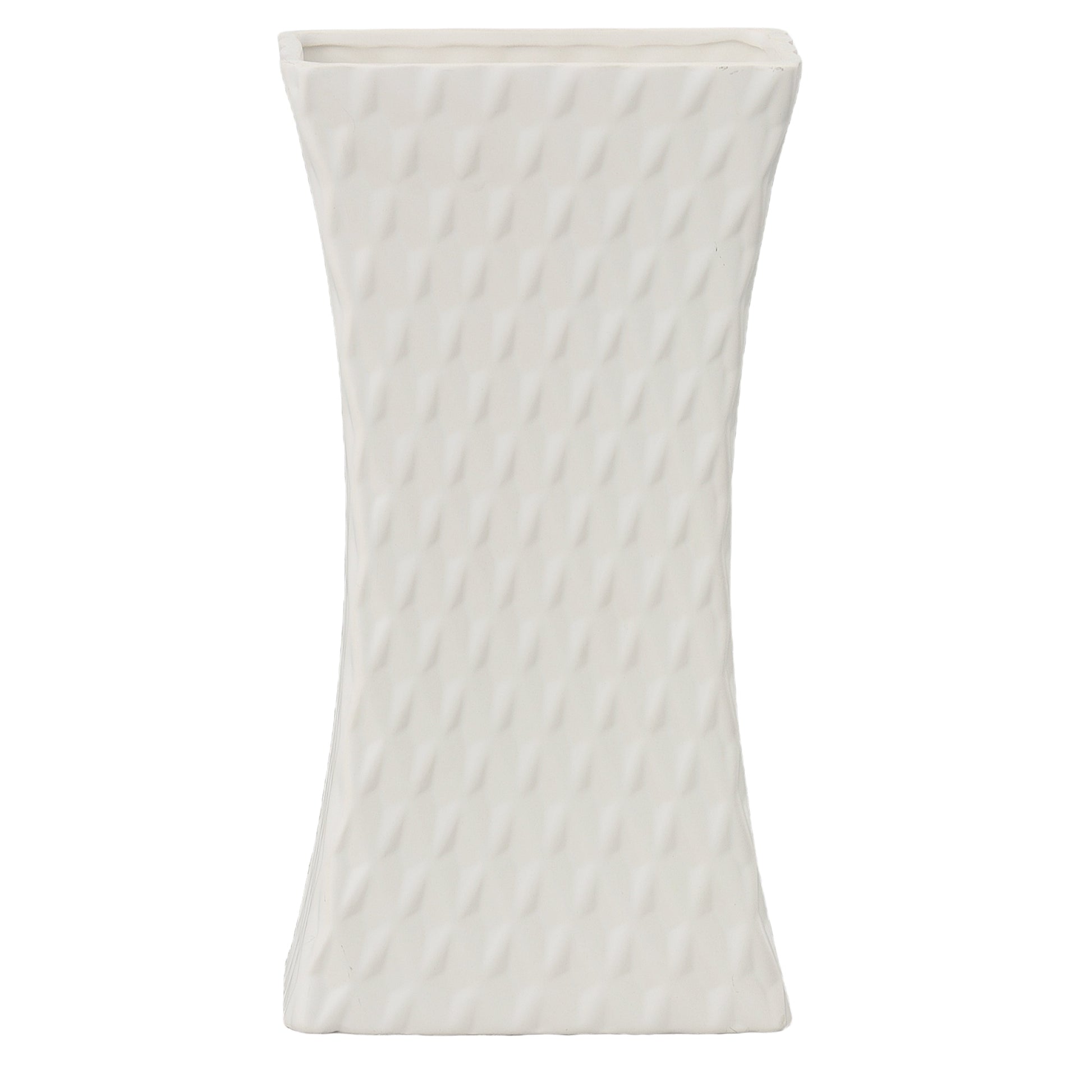 Elevate your décor with the Felicia Ceramic Rectangular Pot, a beautifully crafted piece that blends geometric elegance with a modern matte finish. Its gently curved body features a debossed symmetric diamond pattern, adding depth and visual interest to its clean silhouette. The rectangular shape provides a contemporary touch, making it a versatile accent for a variety of interior styles.