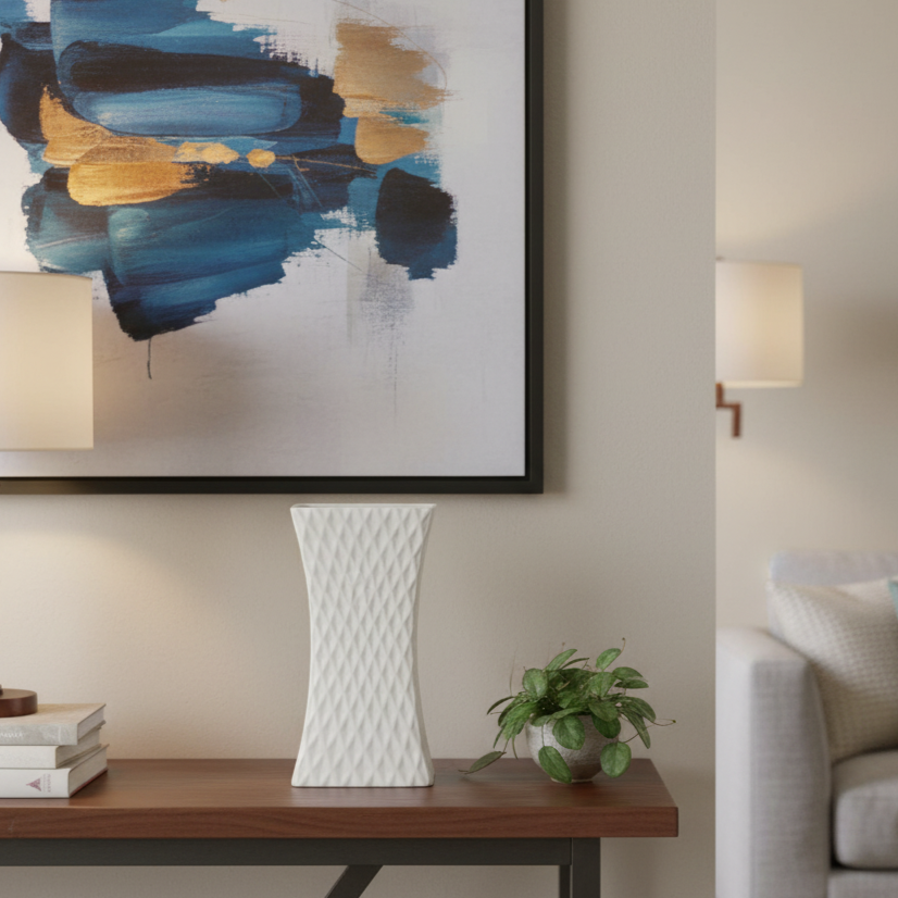 Ideal for displaying floral arrangements, greenery, or as a standalone statement piece, this pot brings subtle sophistication to consoles, mantels, or tabletops.