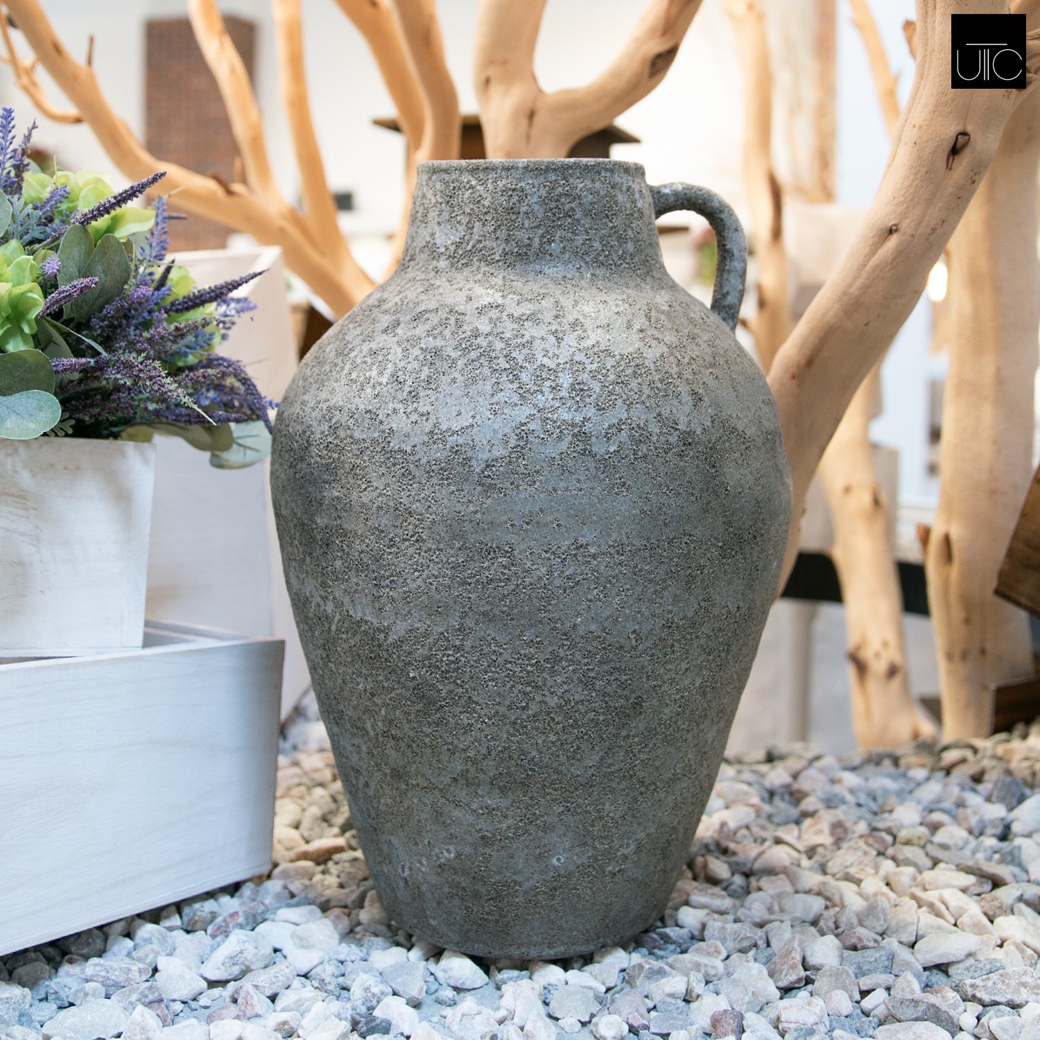 - Oversized ceramic vase with a bold, sculptural form