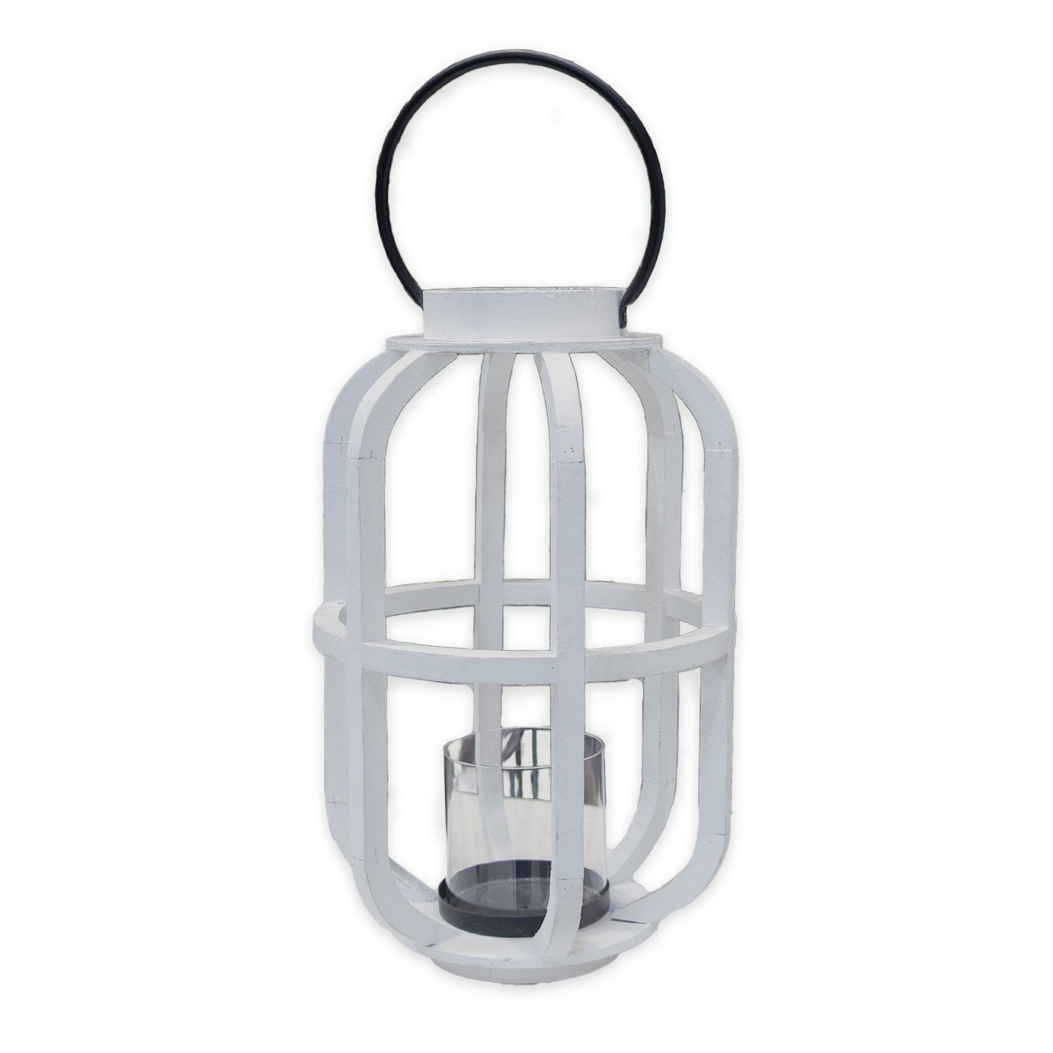The Korin Lantern offers a clean, coastal-inspired charm with its round wood body in a painted white finish. Designed with a sturdy metal top ring handle and an inner glass holder for candles, it’s perfect for brightening up indoor spaces or covered patios with a soft, ambient glow.