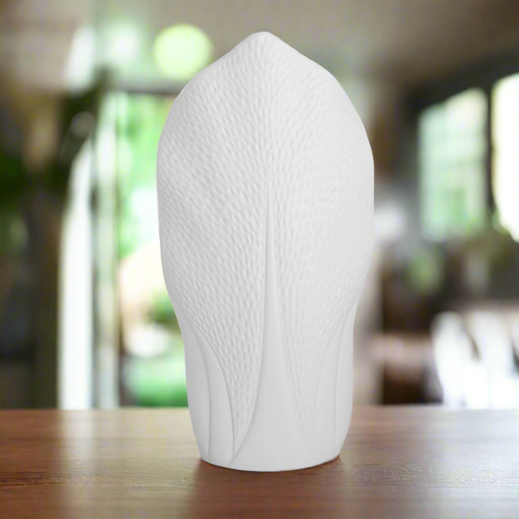 The Londyn Ceramic Vase showcases a striking pyramidal silhouette, enhanced by an engraved circle design that brings depth and artistry to its body. Its tapered bottom offers balance and elegance, while the matte finish lends a modern, refined appeal. Perfect as a statement piece on its own or as a vessel for long-stemmed florals, this vase blends geometric form with artistic detailing for timeless style.