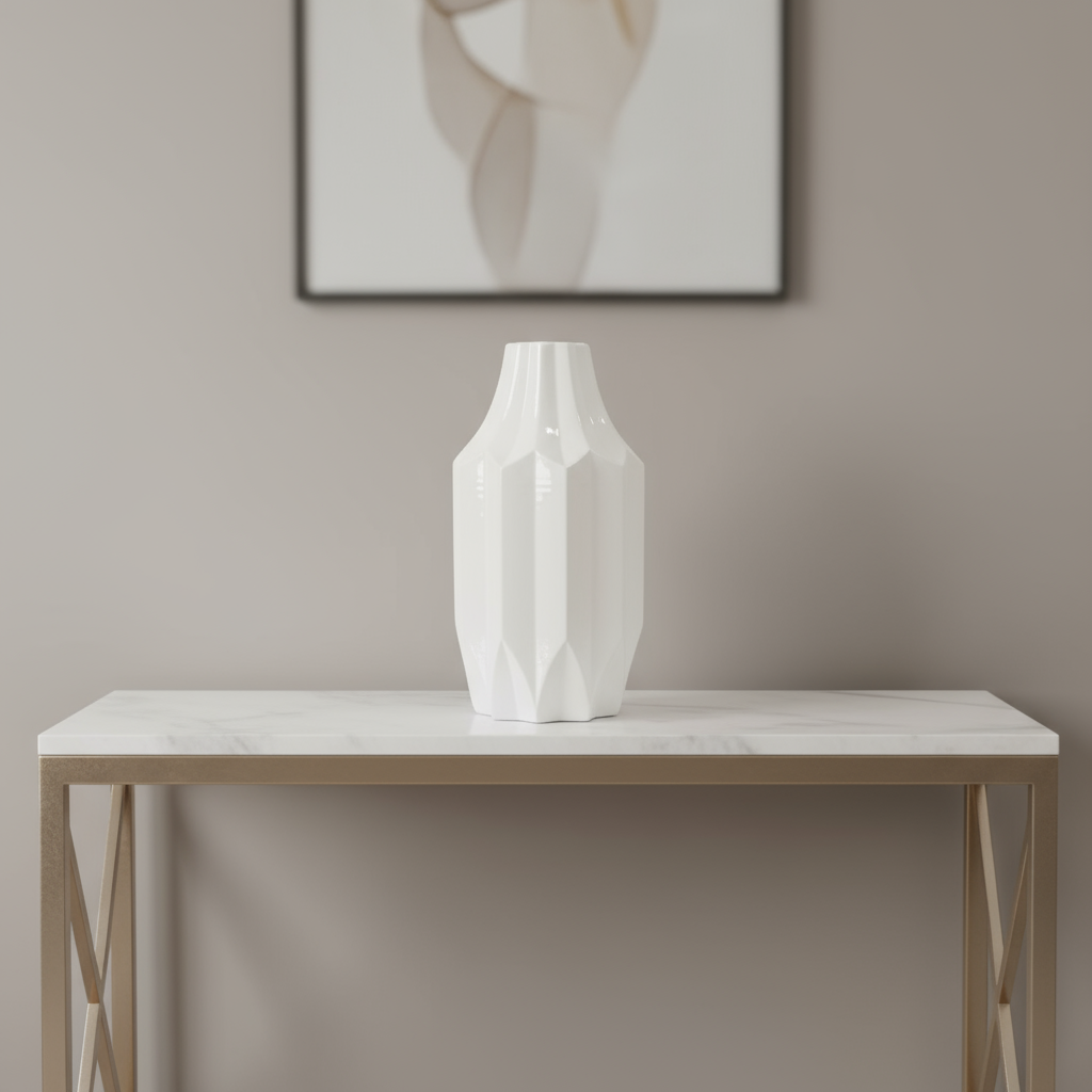Looking for a simple way to add texture and style to your space? The Roxy Modern Geometric Ceramic Vase brings a clean, contemporary touch to any room with its subtle vertical ridges and smooth, glossy surface. Its gently tapered shape and slightly flared opening create a balanced and modern look that pairs well with fresh flowers, dried stems, or even on its own as an accent piece.