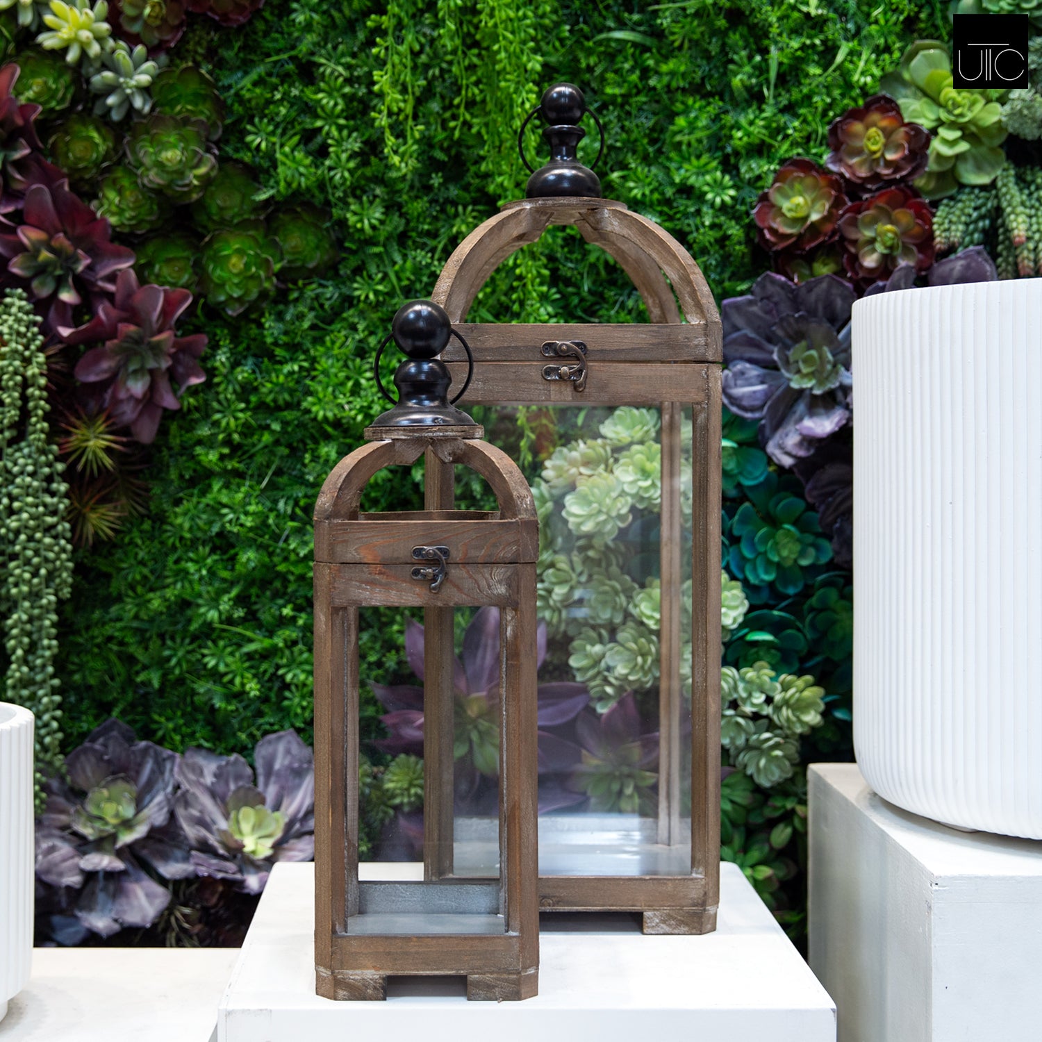 Crafted with natural charm and classic structure, the Roystan Lanterns feature a square wooden frame with full glass panels, a metal finial top, and a sturdy ring handle. Designed to add a warm and welcoming glow, they’re perfect for displaying pillar candles in any space.