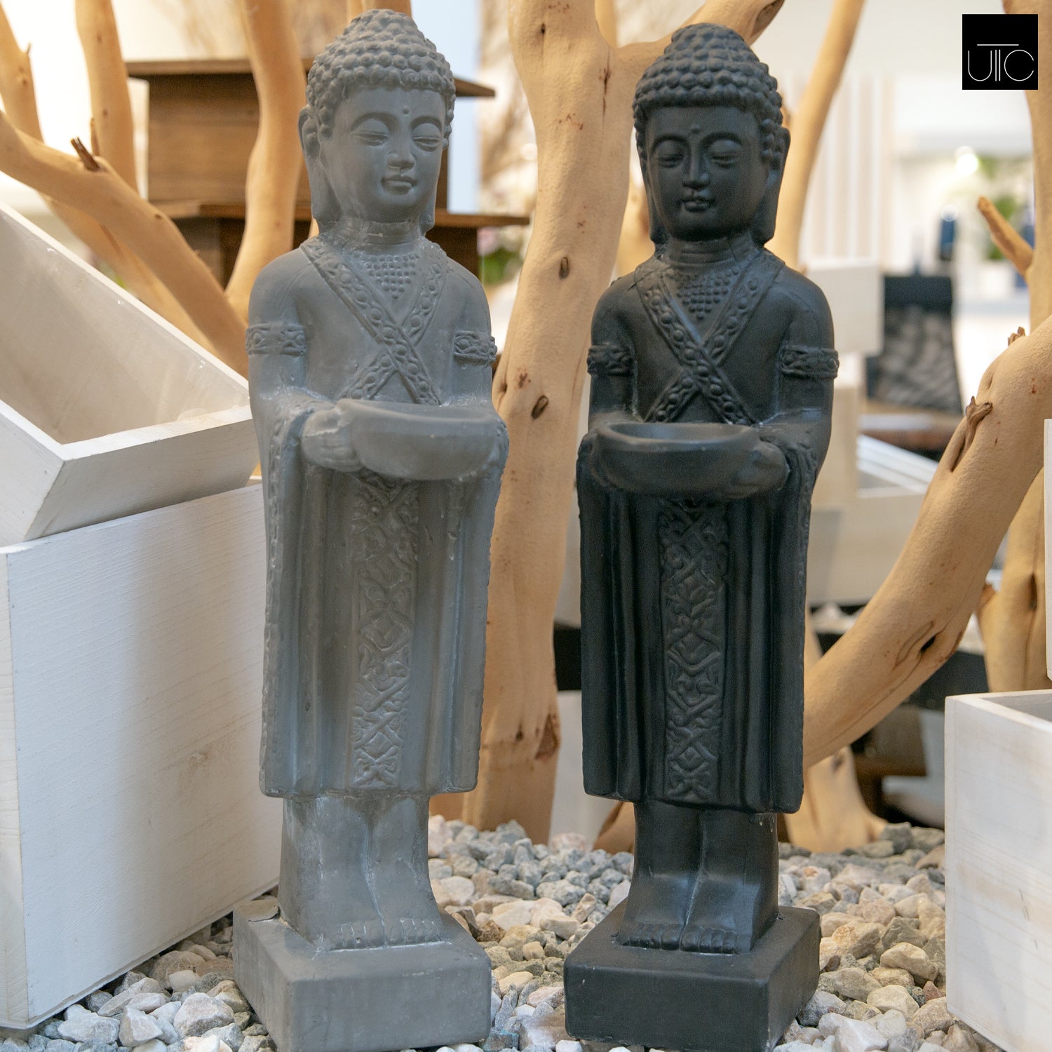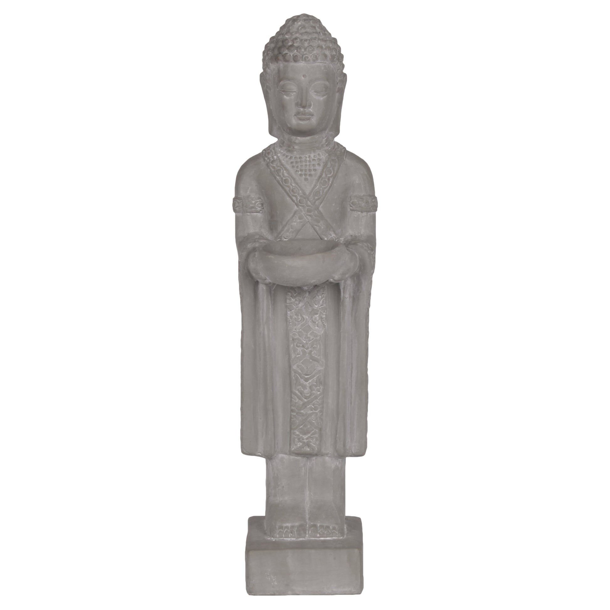 Add a serene presence to your space with the Tenzin Standing Buddha Terracotta Figurine. Depicting Buddha with a rounded ushnisha and holding a bowl, this statue embodies peace and offering. Finished in a weathered charcoal gray tone, the terracotta form rests on a sturdy base, making it a meaningful addition to indoor or covered outdoor spaces.