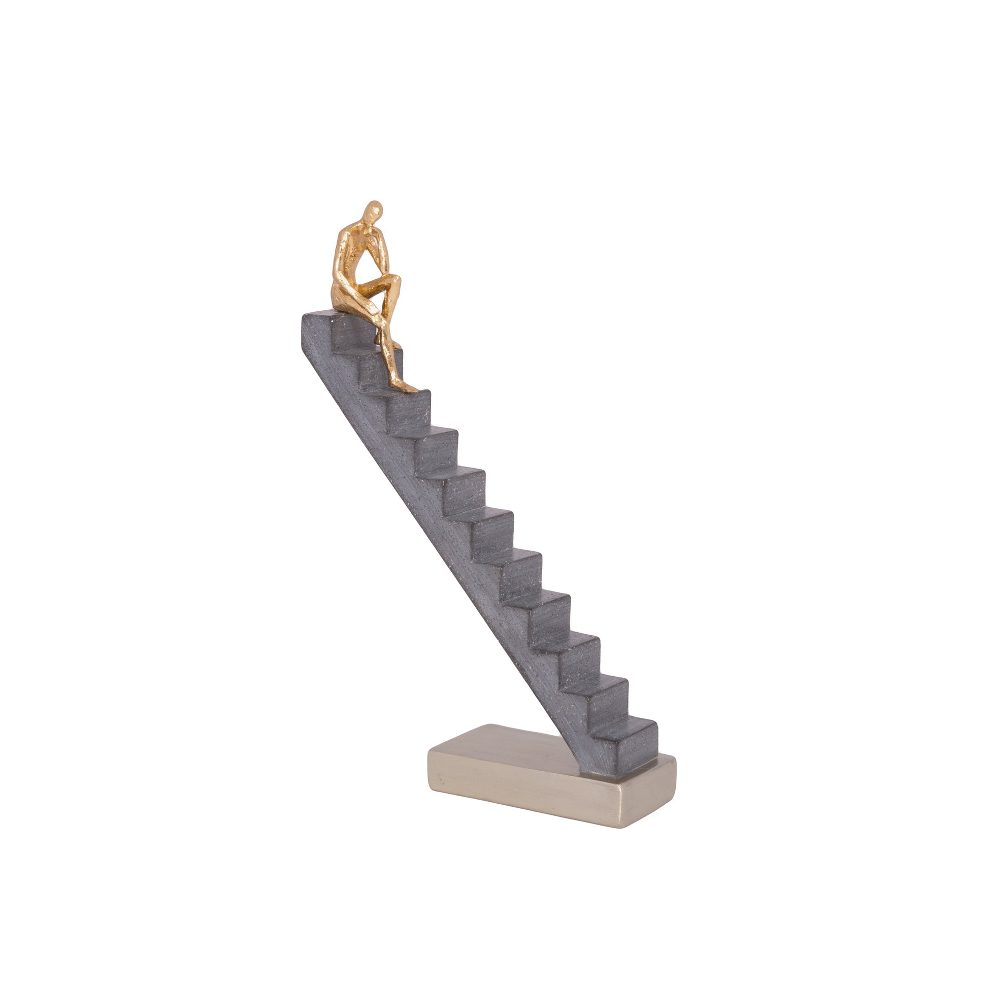 - Crafted from durable resin with gold and gray finishes