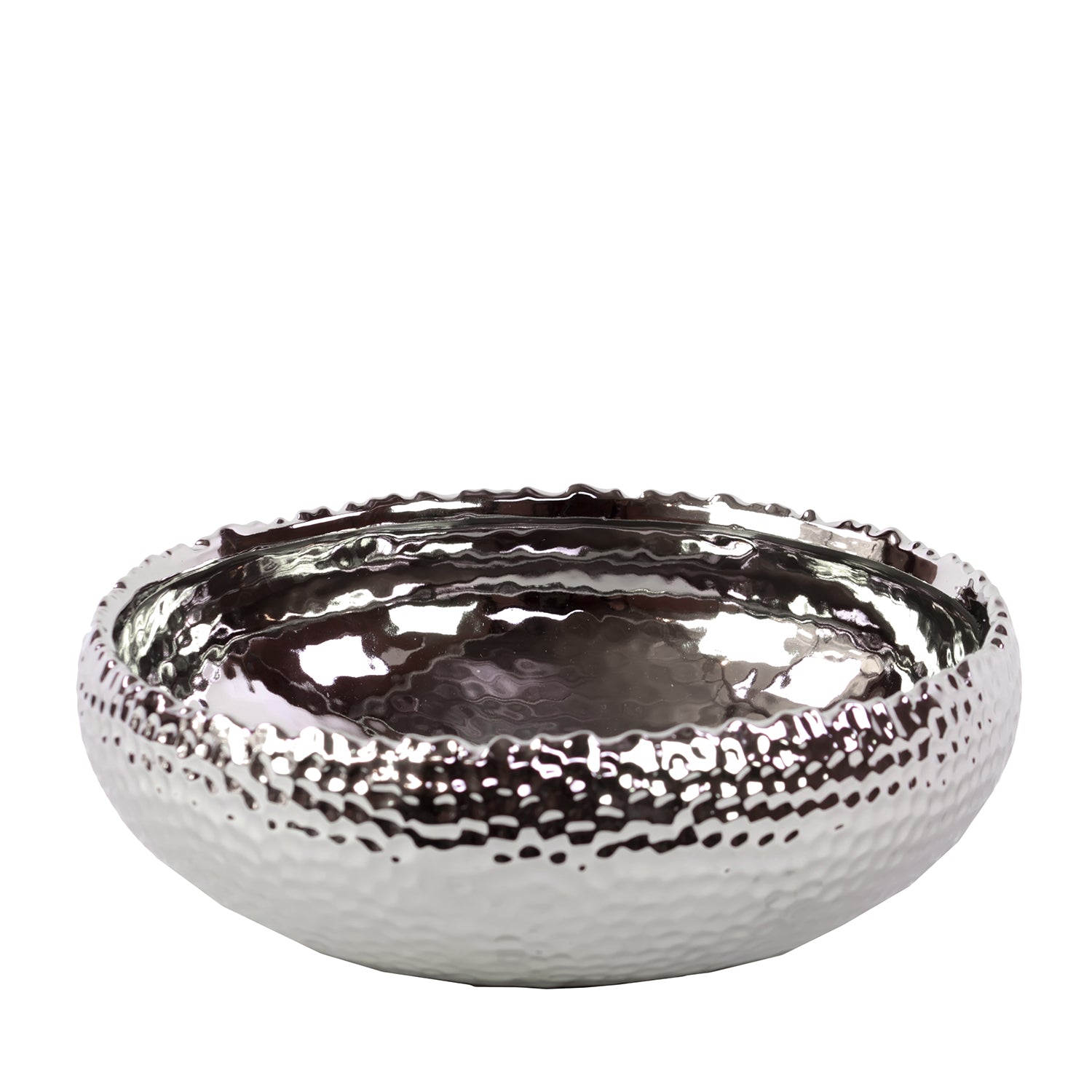 The Veylin Dimpled Ceramic Round Pot offers a modern blend of artistry and elegance. Designed with a subtly uneven lip and a dimpled surface, this ceramic pot is finished in polished chrome silver that reflects light beautifully, creating a sleek and sophisticated accent.