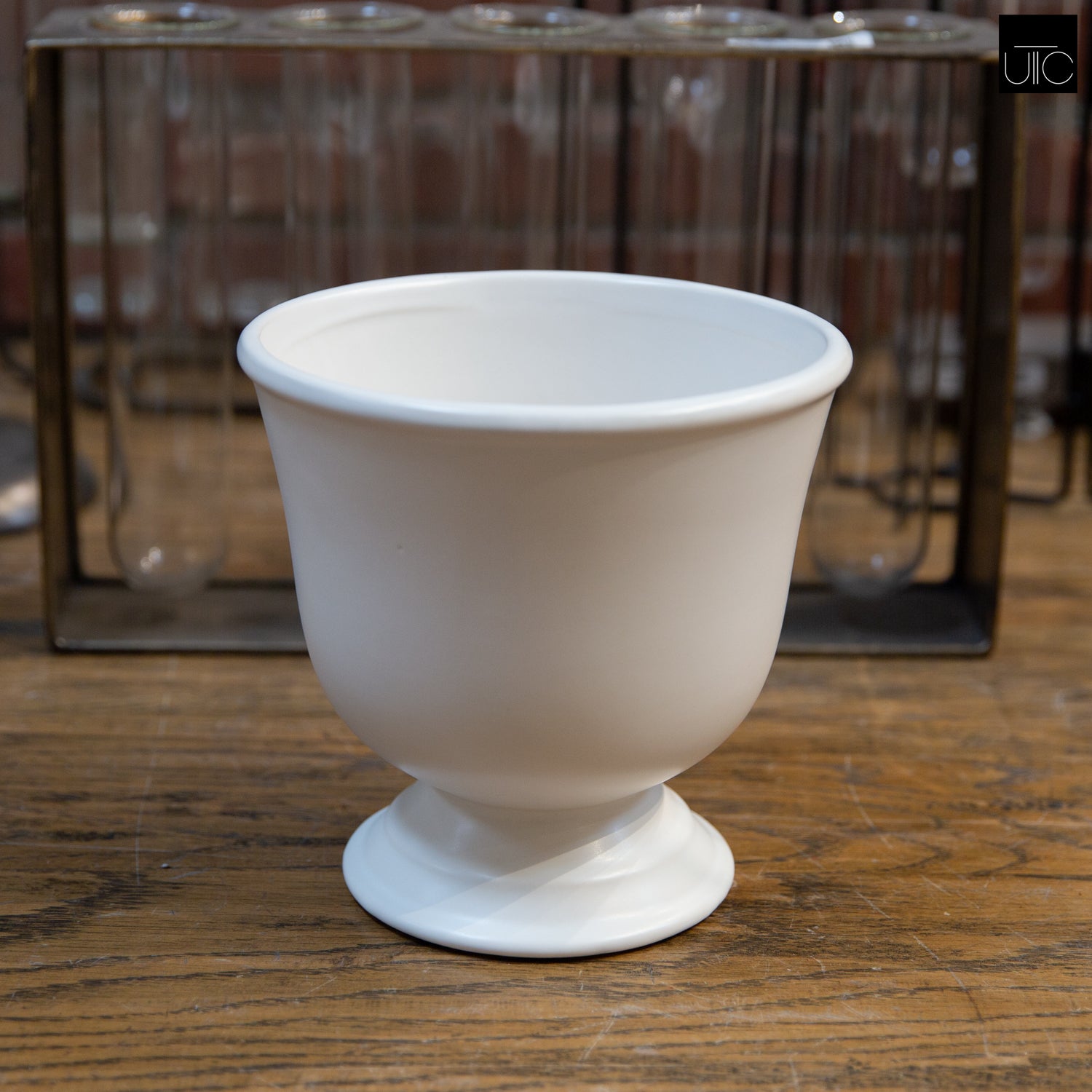 The Zavine Pedestal Ceramic Planter features a rounded bowl elevated on a short pedestal base, finished in a smooth matte white glaze. With its clean lines and sculptural profile, Zavine adds height and balance to any display. Available in small and large sizes, it’s the perfect vessel for faux greenery, succulents, or as a standalone accent in modern and minimalist interiors.
